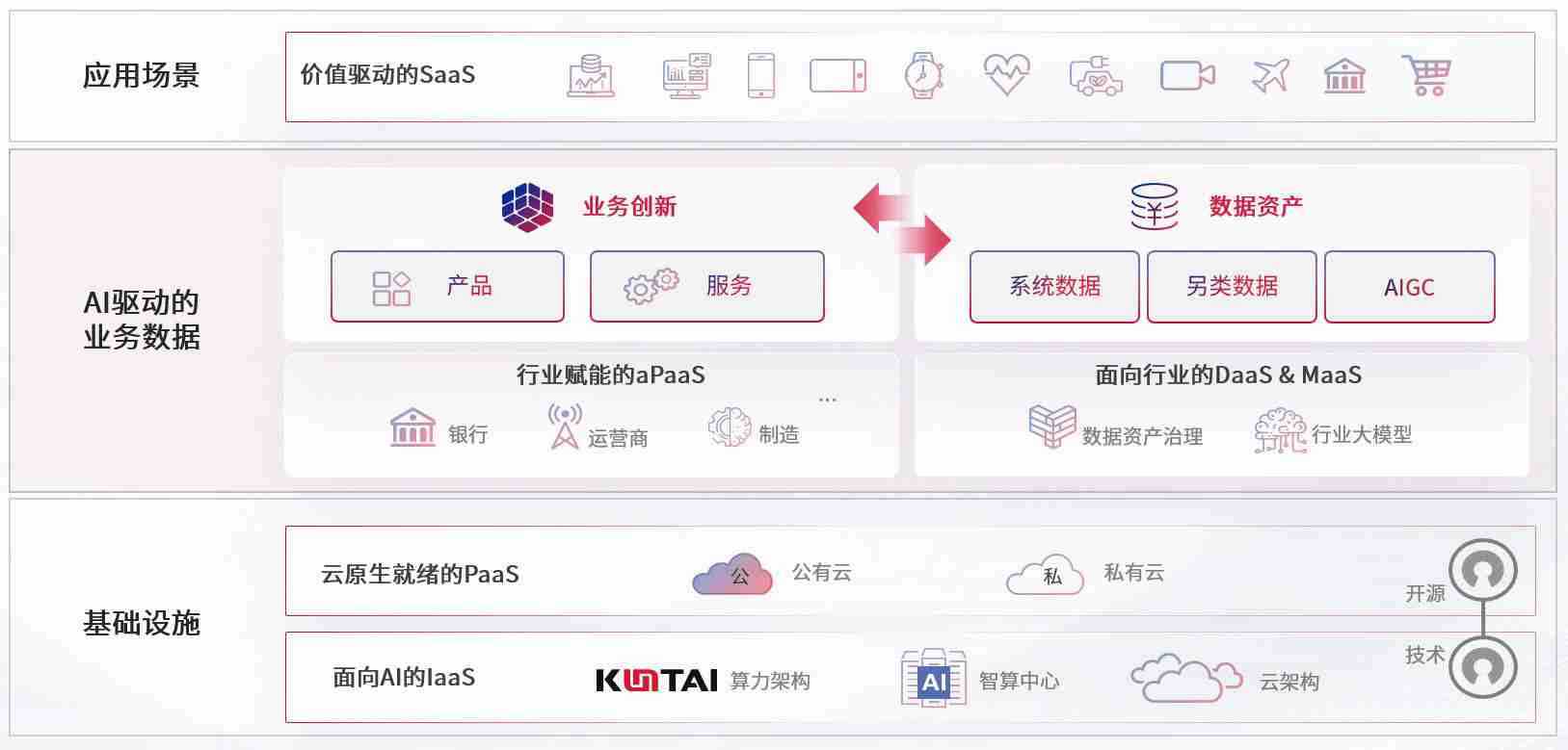 数字时代,,,围绕企业数字化转型的关键要素,,,,KDPAY钱包数码开创性的提出数云融合战略和技术体系框架,,,,着力在云原生、、数字原生、、、、AI原生和信创产业上架构产品和服务能力,,,为处在不同数字化转型阶段的快消零售、、汽车、、金融、、、、医疗、、、政企、、、教育、、、、运营商等行业客户提供泛在的敏捷IT能力和融合的数据驱动能力,,,构建跨界融合创新的数字业务场景和新业务模式,,,助力企业级客户建立面向未来的核心能力和竞争优势,,全面推动社会的数字化、、、、智能化转型升级。。。